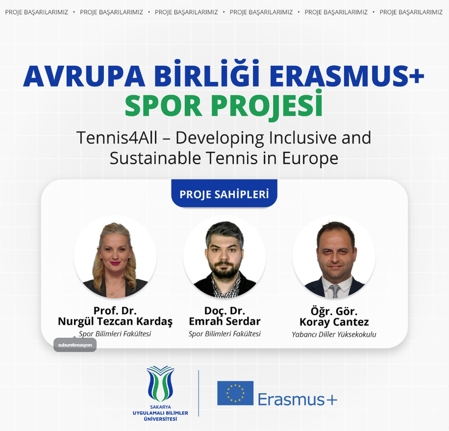Sakarya Uygulamalı Bilimler Üniversitesi (SUBÜ) akademisyenleri Prof. Dr. Nurgül Tezcan Kardaş, Doç. Dr. Emrah Serdar ve Öğretim Görevlisi Koray Cantez tarafından hazırlanan ‘Tennis4All – Developing Inclusive and Sustainable Tennis in Europe’ başlıklı Erasmus+ Spor Projesi, Avrupa Birliği Komisyonu tarafından kabul edildi. Toplam 120 bin Euro bütçe ile desteklenecek projede SUBÜ, ortak kurum olarak 30 bin Euro hibe desteği alacak. SUBÜ projeye; uygulamalı spor eğitimindeki deneyimi, akademik birikimi ve dijitalleşme alanındaki teknik altyapısı ile katkı sağlayacak. Böylelikle SUBÜ, hem dezavantajlı grupların spora erişimini arttıracak pilot uygulamalar yürütecek hem de kapsayıcı eğitim yöntemlerinin akademik çerçevede yaygınlaştırılmasına destek olacak. Konuya ilişkin olarak proje ekibinin yaptığı açıklamada, “Tennis4All ile hedefimiz; tenisi herkes için erişilebilir ve kapsayıcı hale getirmek, antrenörlerimizi yenilikçi yöntemlerle güçlendirmek ve dijitalleşmeyi sporun hizmetine sunmak. Ayrıca hem sporun sosyal birleştirici gücünü ortaya koymayı hem de uluslararası düzeyde kalıcı bir etki ortaya çıkarmayı amaçlıyoruz” denildi.